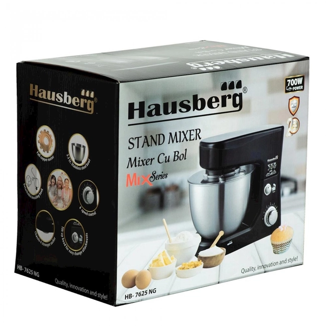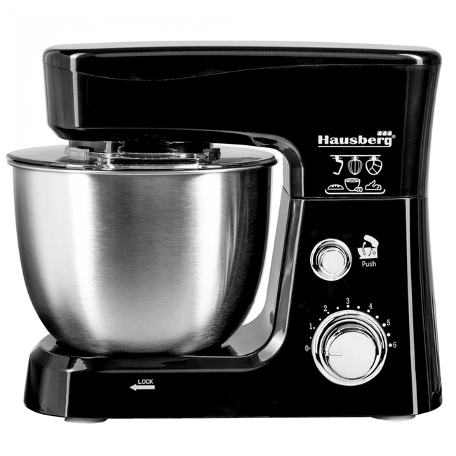 Hausberg HB-7625 – güclü motorlu, çoxfunksiyalı xəmir yoğuran mikser, mətbəxdə rahat və sürətli hazırlıq üçün ideal.