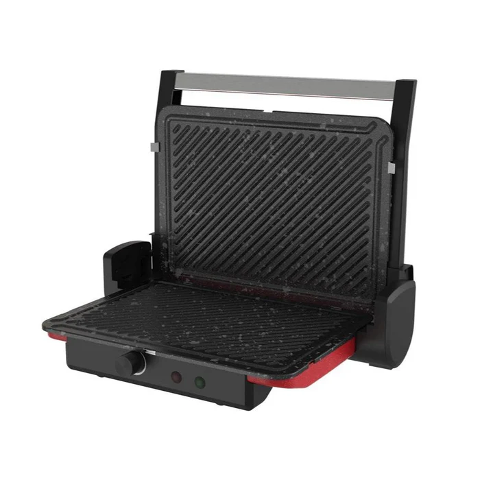 King Toster K-459 – 1800 W güc ilə 6 dilim tost hazırlaya bilən, çıxarıla bilən yapışmayan plitələr və 180° açılan üst gövdə ilə həm tost, həm də ızgara funksiyası təklif edən çoxfunksiyalı elektrikli toster və grill maşınıdır.