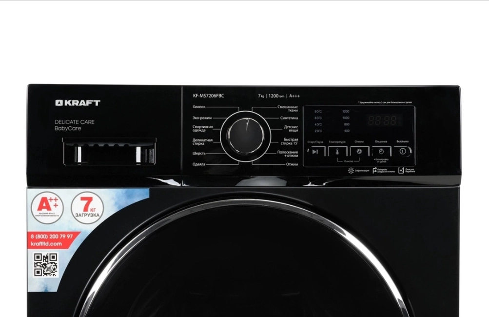 Kraft MS 7206 FBC 7 kg tutumlu frontal yükləməli paltaryuyan maşındır. Enerji sinfi A+++, 1200 dövr/dəq maksimal sıxma sürəti, 12 yuma proqramı və LED displey kimi xüsusiyyətlərlə təchiz olunub. Günlük çamaşır yuma üçün rahat və qənaətcil modeldir.